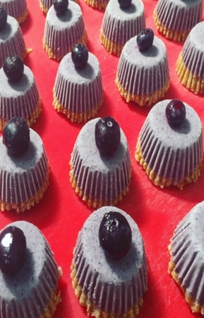 Pour blueberry mixture into each cupcake case, leaving about 1 cm for the biscuit base.